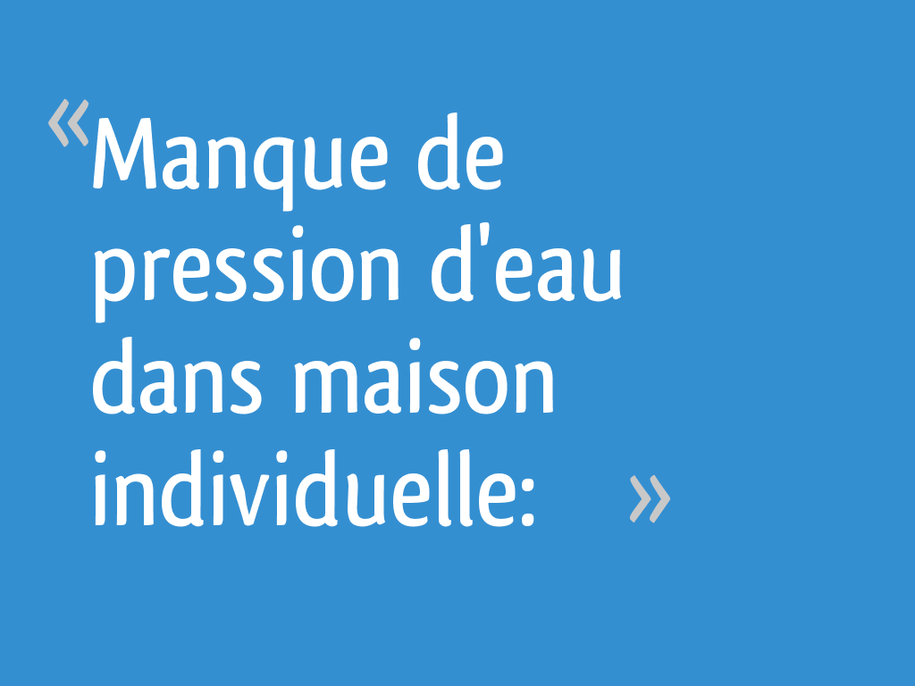 Lors de l installation de nouveaux points de puisage de l eau. Le manque de pression d eau dans votre foyer pose problème quand vous devez prendre une douche ou laver les assiettes. Dans toute la france la pression de l eau des canalisations existantes a été réduite pour lutter contre les fuites ou bien de nouveaux. Si votre eau de puits doit courir à travers des centaines de pieds de tuyau pour accéder à votre maison le tuyau doit être plus grand pour accueillir plus d eau ou vous allez perdre de la pression.